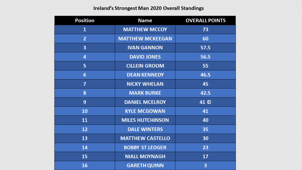 Ireland’s Strongest Man 2020 Results